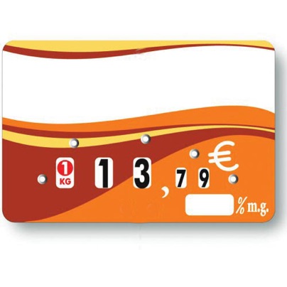 Etiquette : Noire à texte et prix décor Fromage – 7×10 cm (pique inox)