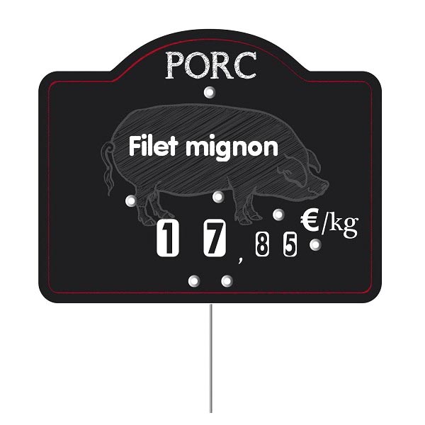 Etiquette : Maestro Porc à texte – 9×12 cm (avec roulettes & pique inox)