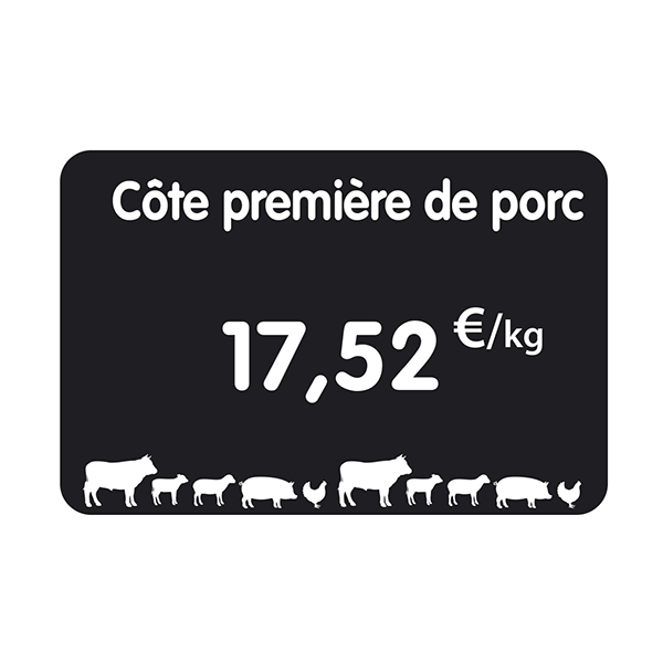 Etiquette : Noire à texte et prix décor Boucherie – 8×12 cm