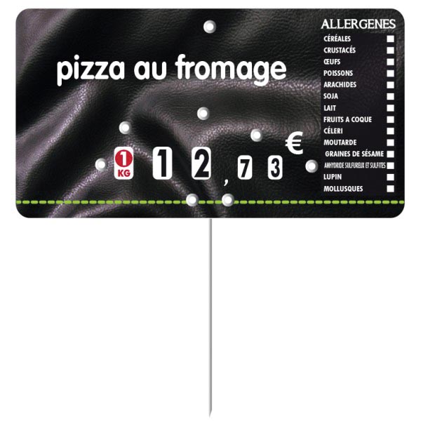 Etiquette : Presto à texte avec allergènes – 7×13 cm (avec roulettes & pique inox)