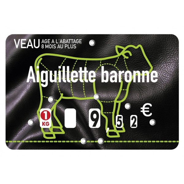 Etiquette : Presto Veau à texte – 8×12 cm (avec roulettes & pique inox)