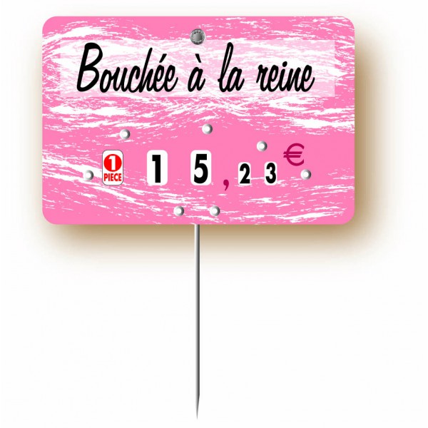 Etiquette : Turbulence rose neutre – 7×10 cm (avec roulettes & pique inox)