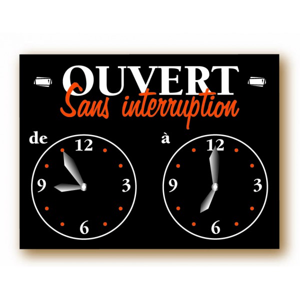 Panneau horaire : Sans interruption – 10×15 cm