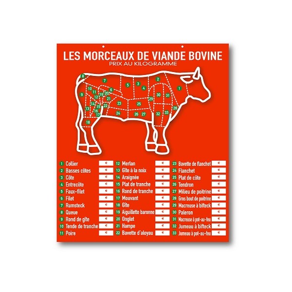 / Panneau prix : Presto Viande Bovine – 52×60 cm (avec feutre)